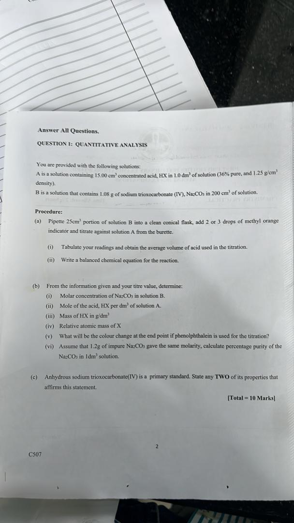2024 JUPEB Chemistry Practical Answers