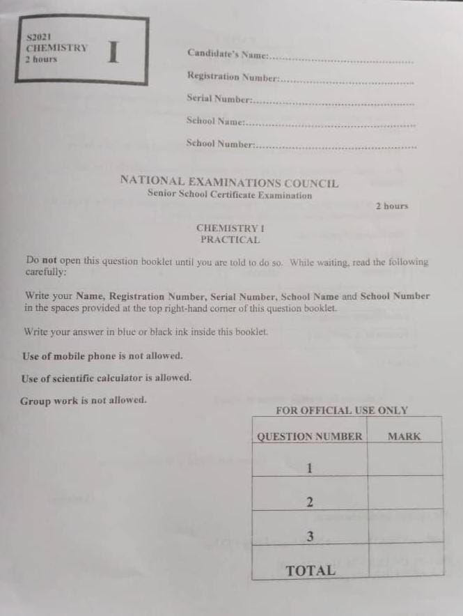 2024 NECO Chemistry Practical Questions and Answers: