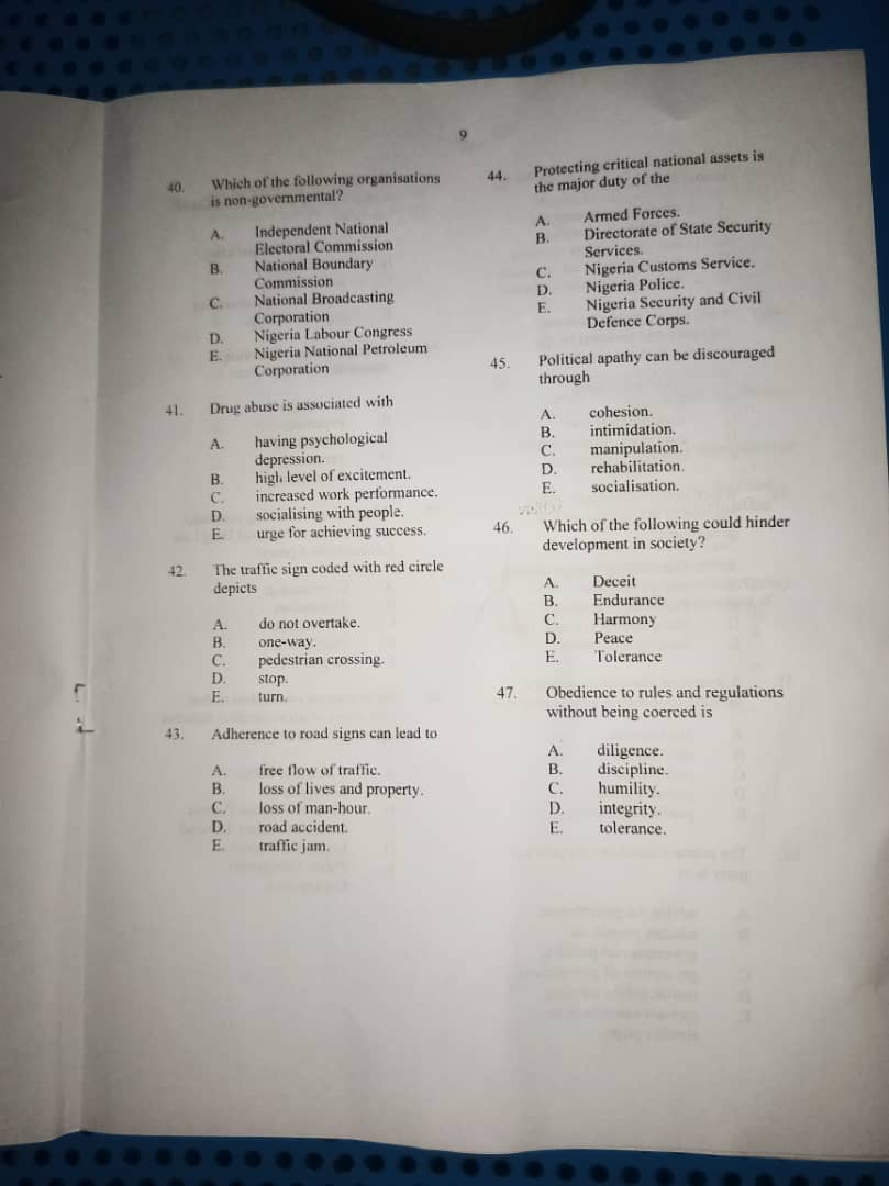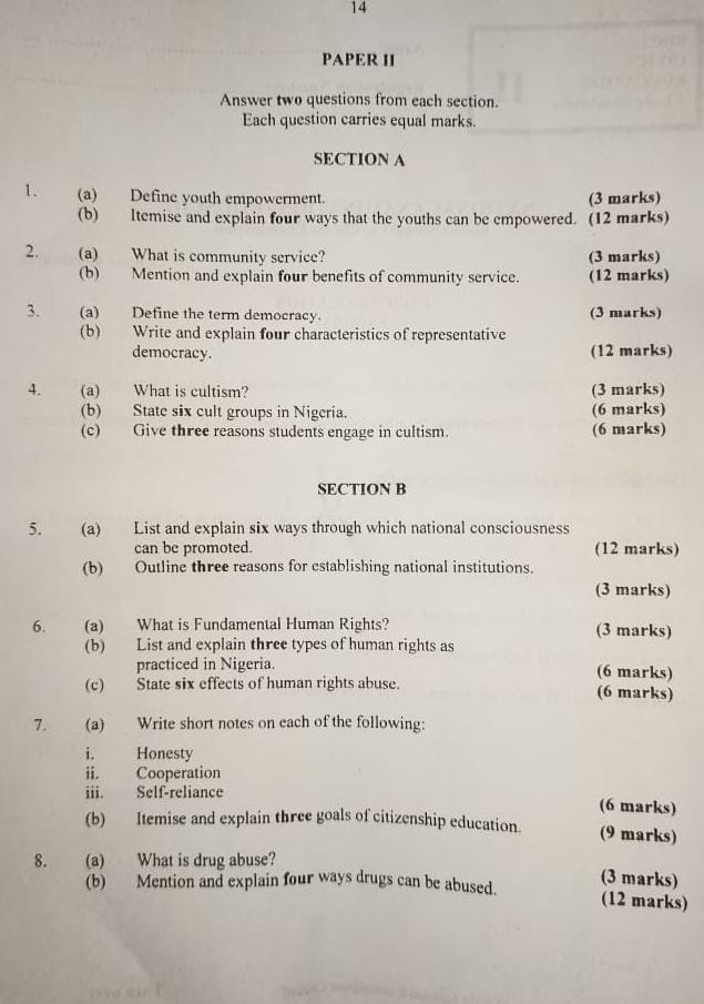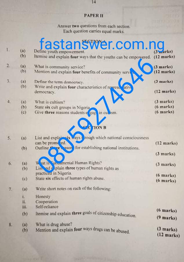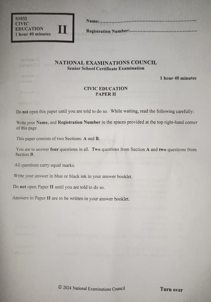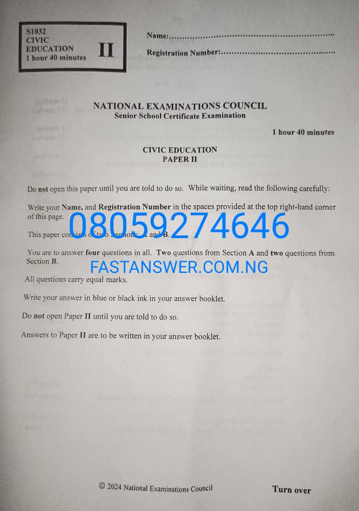 2024 NECO Civic Education Question and Answers: