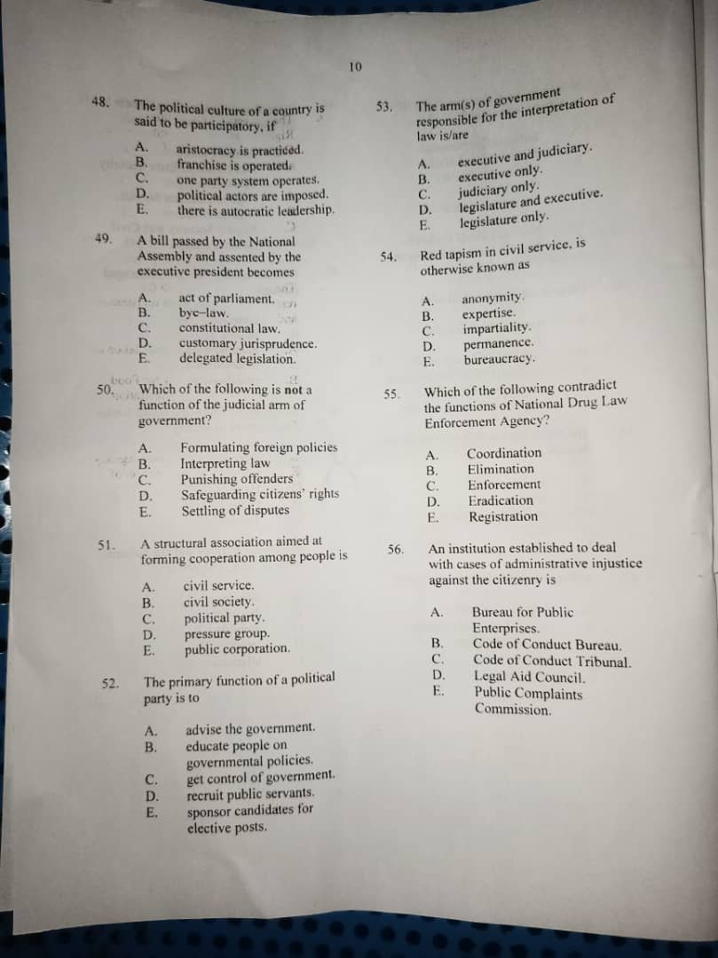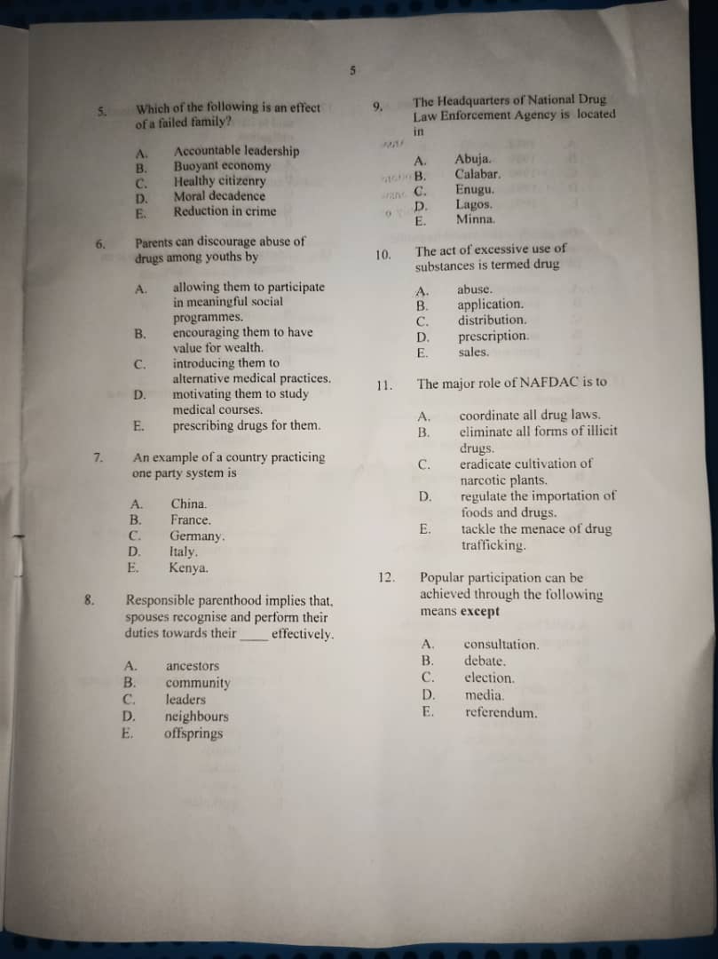 CIVIC EDUCATION THEORY ANSWERS