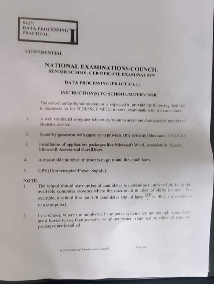 CLICK HERE TO DOWNLOAD ALL NECO 2024 DATA PROCESSING PRACTICAL QUESTION PAPERS