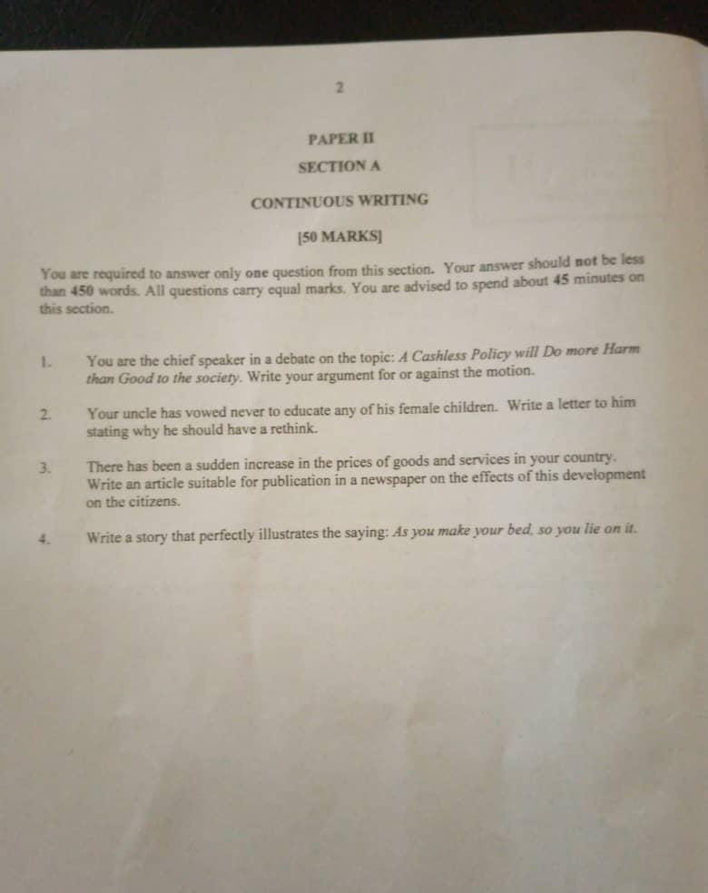 2024 NECO English language Questions Papers: